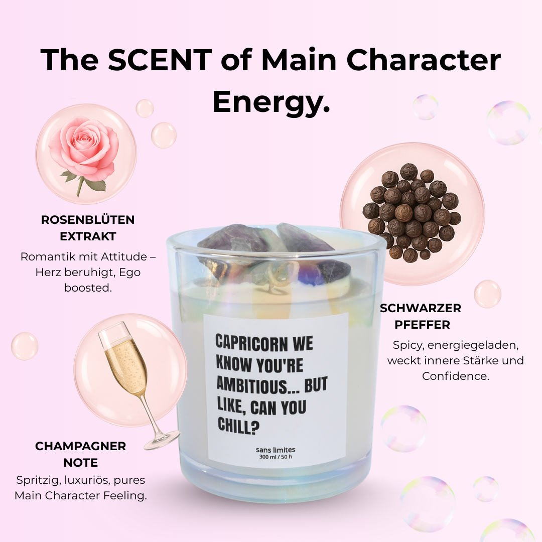Endlich mal eine Astro-Brand, die nicht nur schnulzig ist, sondern genau meinen Humor trifft. Die Sprüche sind savage, die Kerze sieht mega hochwertig aus und der Kristall darin macht’s richtig besonders.